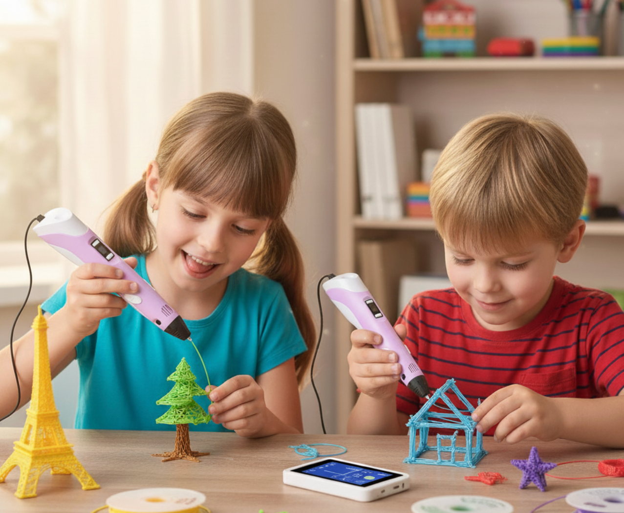 De ninguna manera: el bolígrafo 3D permite que los niños transformen sus ideas en objetos reales, no solo líneas en papel. Pueden crear figuras, decoraciones, juguetes o diseños personalizados — fomentando la creatividad, el aprendizaje y reduciendo el tiempo frente a pantallas.