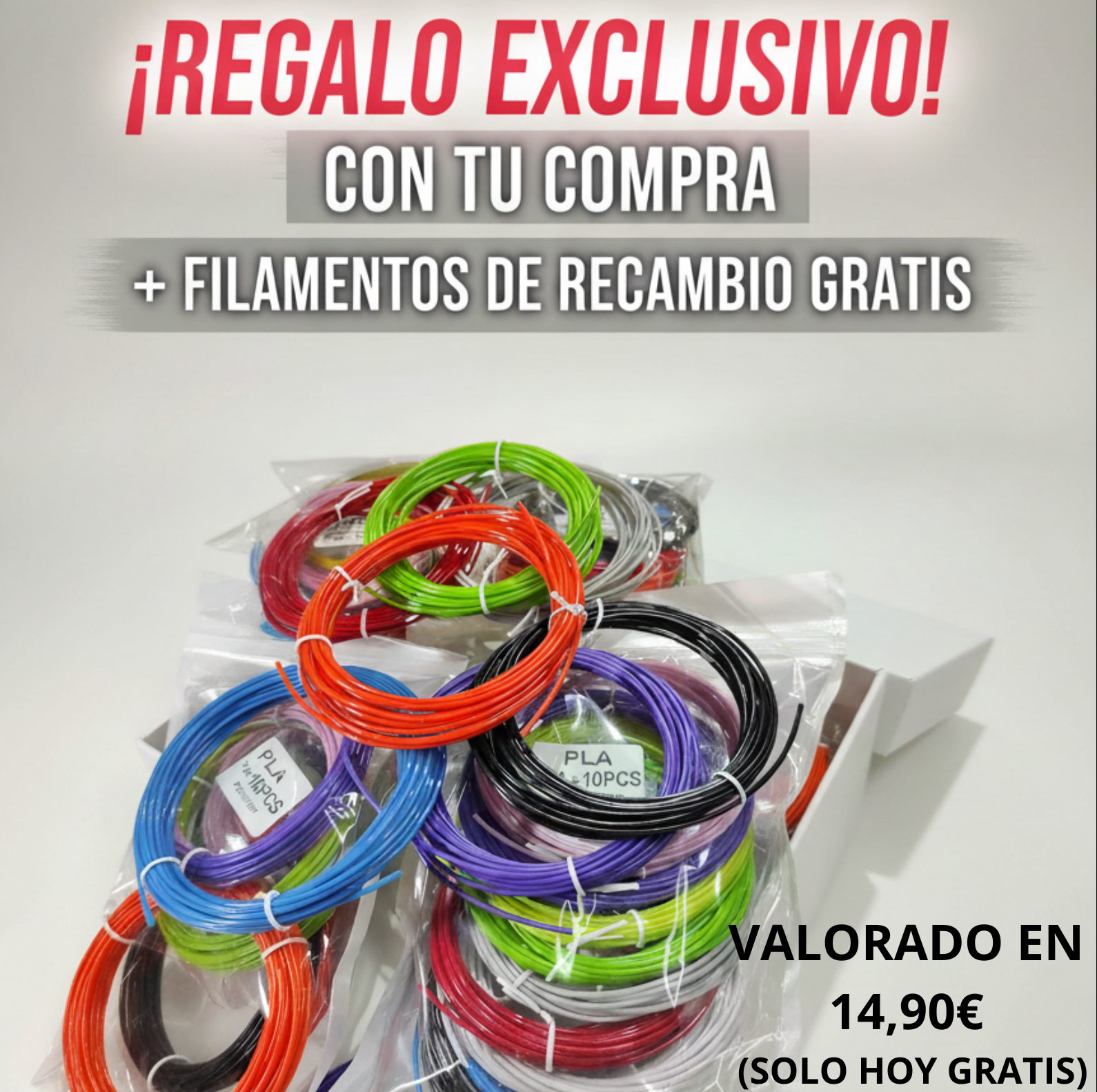 Estos bolígrafos trabajan con filamento plástico (como PLA, PCL u otros materiales seguros para niños) que se funde y solidifica rápidamente. Para conseguir recambios contacte con nosotros o puede encontrarlo en cualquier sitio.