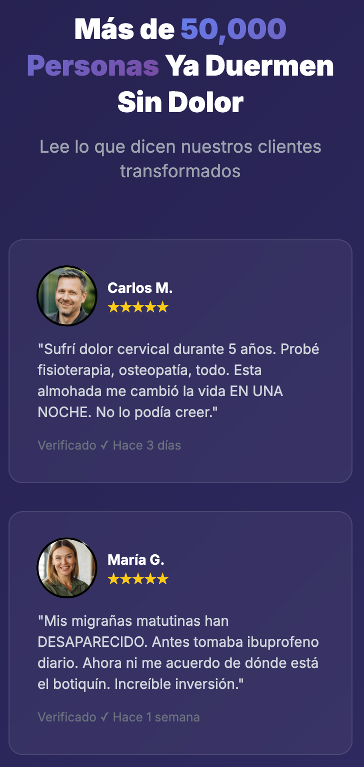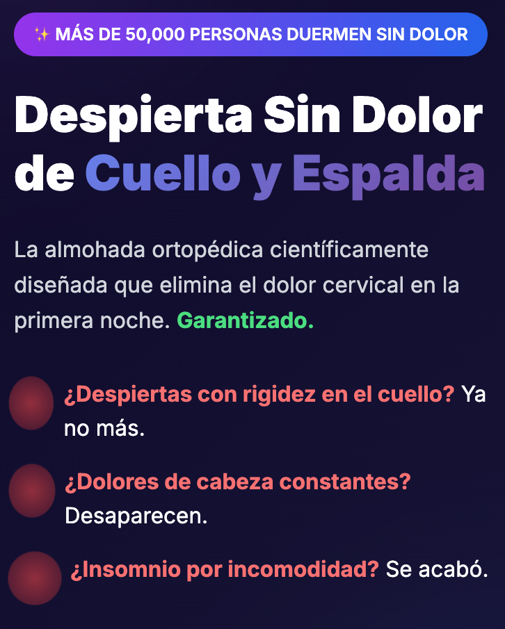 “Me despertaba todos los días con dolor de cuello y rigidez en la espalda. Desde que uso esta almohada, descanso mejor y me levanto mucho más suelta. El cambio se nota de verdad.”