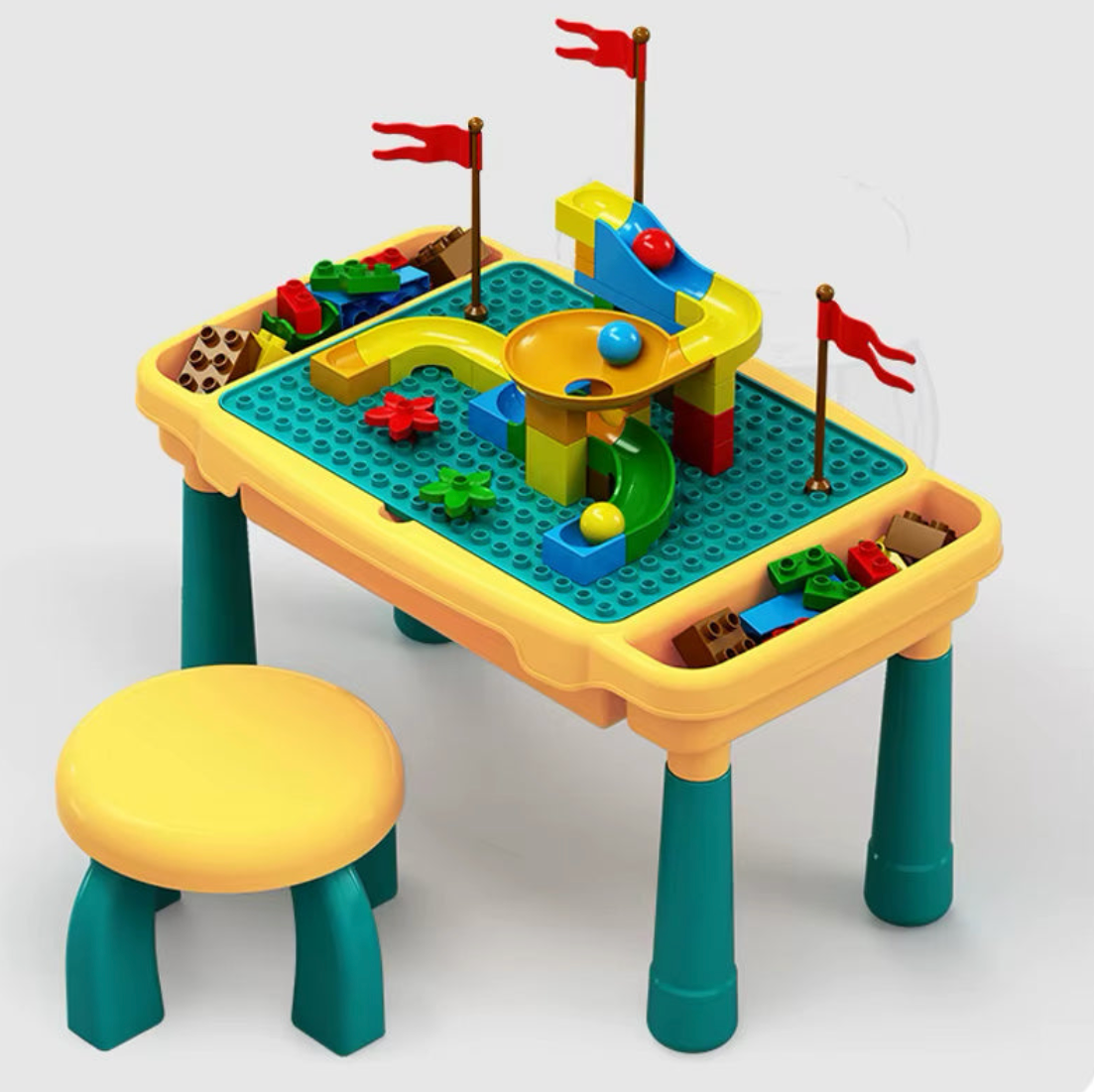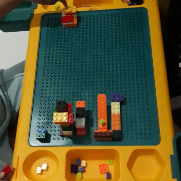 Comienza con nuestra mesa multifuncional que convierte cualquier espacio en un mundo de imaginación. Las piezas y el tablero permiten a tu hijo construir figuras y desarrollar su creatividad.