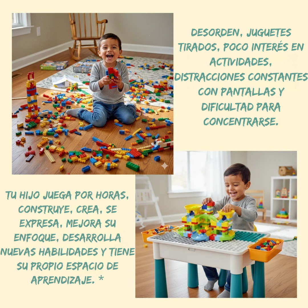 Una mesa que transforma el juego en aprendizaje. Con piezas de construcción y un tablero interactivo, tu pequeño desarrollará su creatividad mientras se divierte sin límites.