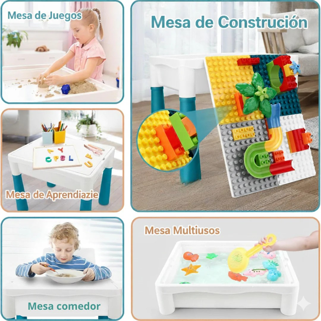 Desde construir figuras hasta disfrutar de un juego de agua, esta mesa ofrece infinitas posibilidades. Ideal para el aprendizaje, la diversión y el desarrollo de tus hijos, todo en un solo pack.