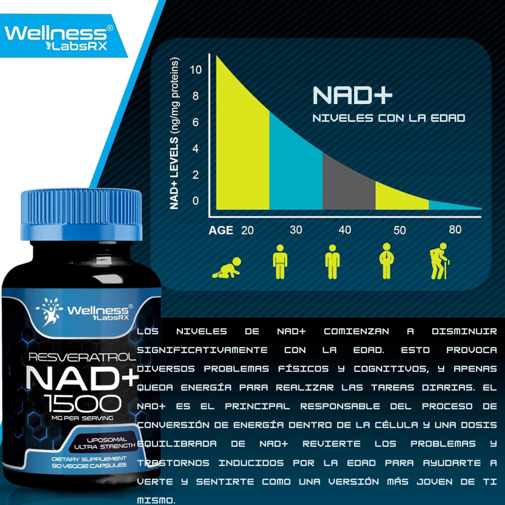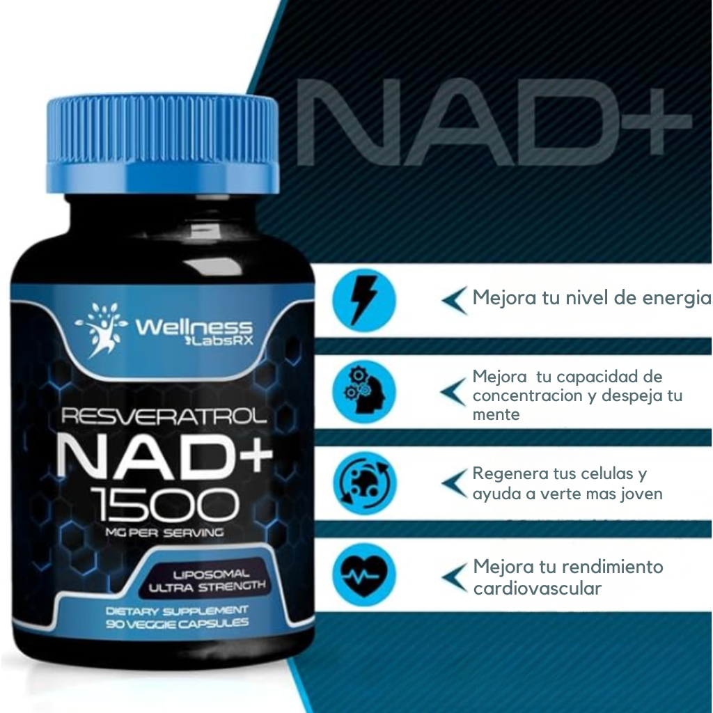 - NAD+ es una coenzima vital involucrada en numerosos procesos biológicos, incluida la reparación del ADN, la producción de energía y el metabolismo celular. A medida que envejecemos, los niveles de NAD+ disminuyen naturalmente, lo que lleva a una disminución de la energía, la función cognitiva y la vitalidad general. Estas cápsulas NAD+ están diseñadas para ayudar a aumentar los niveles de nad+, ayudándote a combatir la fatiga, pueden ayudar con el envejecimiento saludable y apoya una función celular óptima